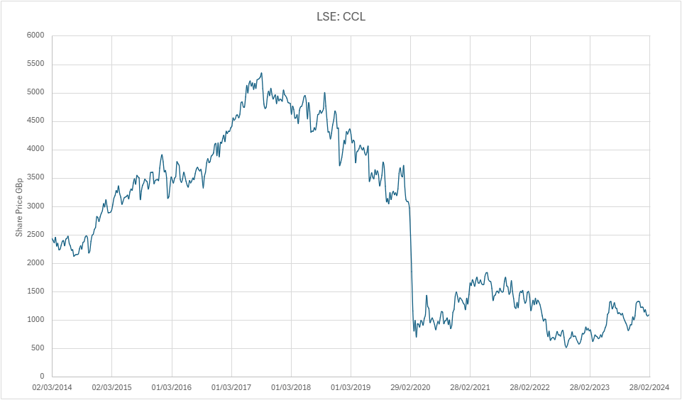 - Feel the share price has lagged the actual cruise industry recovery.
